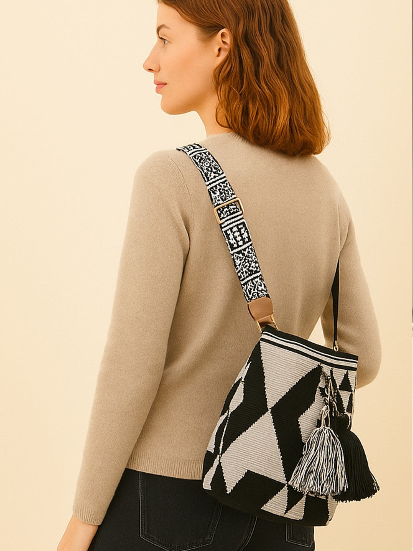 Each Wayúu backpack is woven by hand, stitch by stitch, by Indigenous women in La Guajira, Colombia.